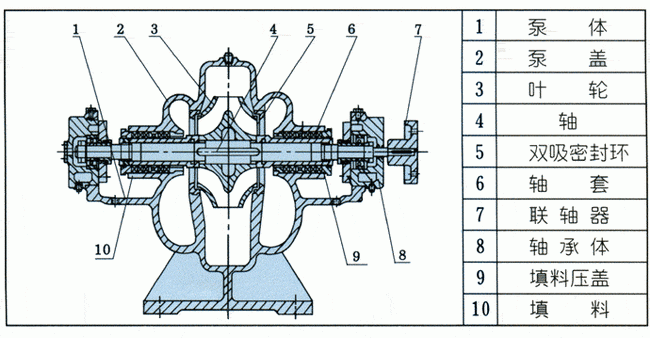 ![]() 三、S、SH型單級雙吸泵結(jié)構(gòu)原理圖: