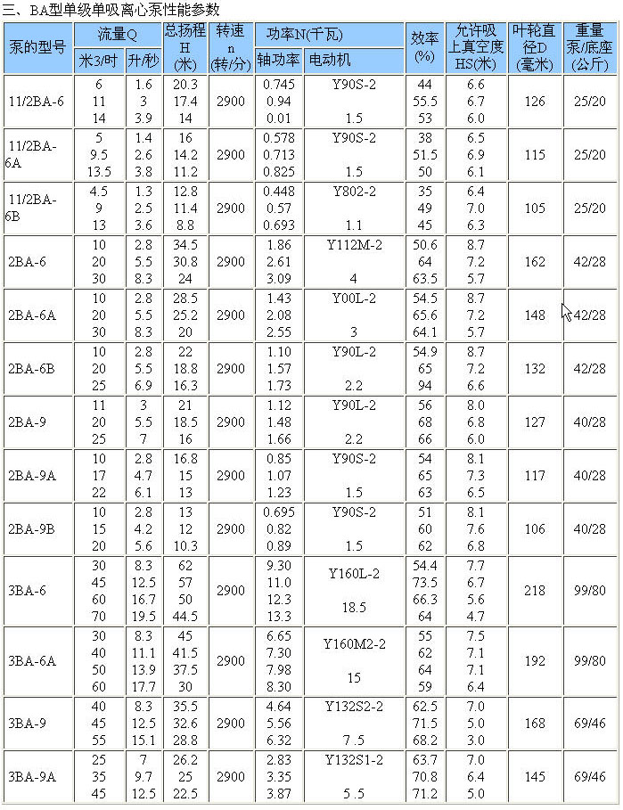 BA型單級單吸離心泵一、產(chǎn)品概述 BA型泵系列單級單吸懸臂式離心泵,供吸送清水及物理化學(xué)性質(zhì)類似于水的液體之用。 本型泵揚(yáng)程在8