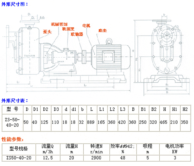 一、產品概述: ZS型臥式玻璃鋼自吸泵,接觸介質的部件,采用聚乙烯醇縮丁醛改性酚醛玻璃纖維,經高溫模壓成形的酚醛玻璃鋼制件。產品具有輕質、高強、不變形、耐溫、耐腐蝕等優良性能。在防腐方面可部分替代含鉬不銹鋼,鈦及鈦合金等貴重金屬。采用WB2型外裝式F4波紋機械密封,密封可靠,使用時間長。 二、產品特點: ZS型玻璃鋼自吸泵,它具有結構緊湊、操作方便、運行平穩、維修方便、效率高、壽命長、并有較強的自吸能力1、等優點。管路中不需安裝底閥,工作前只需保留泵體內儲有定量引液即可,因此簡化了管路系統,又改善了勞動條件。 三、產品用途: 主要用于石化、冶煉、染料、印染、農藥、制藥、稀土、化肥等行業,輸送不含固體顆粒,不易結晶,溫度不高于 四、ZS型臥式玻璃鋼自吸泵尺寸及參數表: