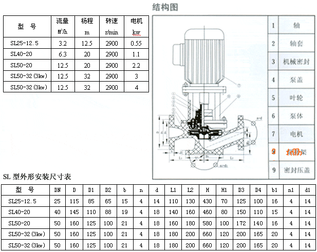 四、SL型酚醛玻璃鋼管道泵性能參數(shù)表