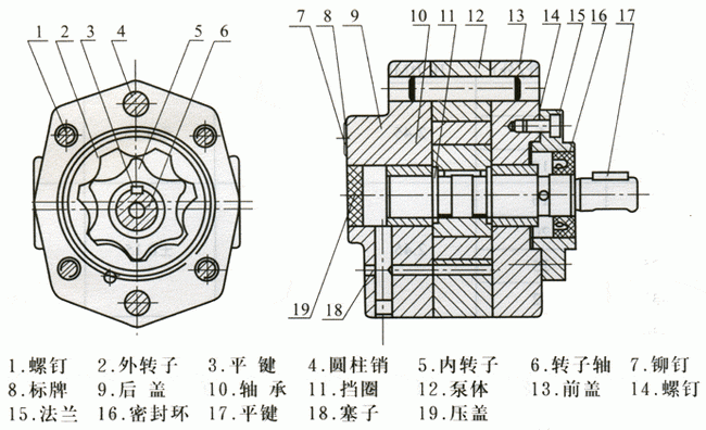 BB、BBG型內(nèi)嚙合擺線齒輪泵|結(jié)構(gòu)原理BB、BBG型內(nèi)嚙合擺線齒輪泵結(jié)構(gòu)原理圖: