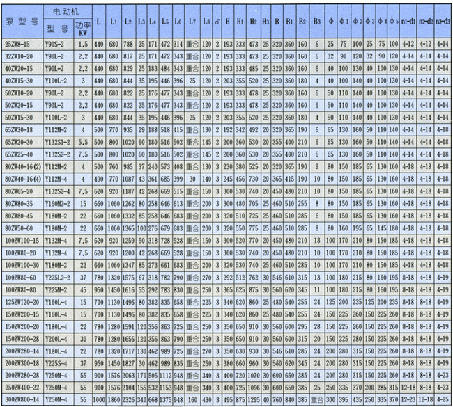 導航:回首頁---當前位置---水泵產品內容頁補充頁 >> ZW型自吸式無堵塞排污泵外形安裝尺寸 |