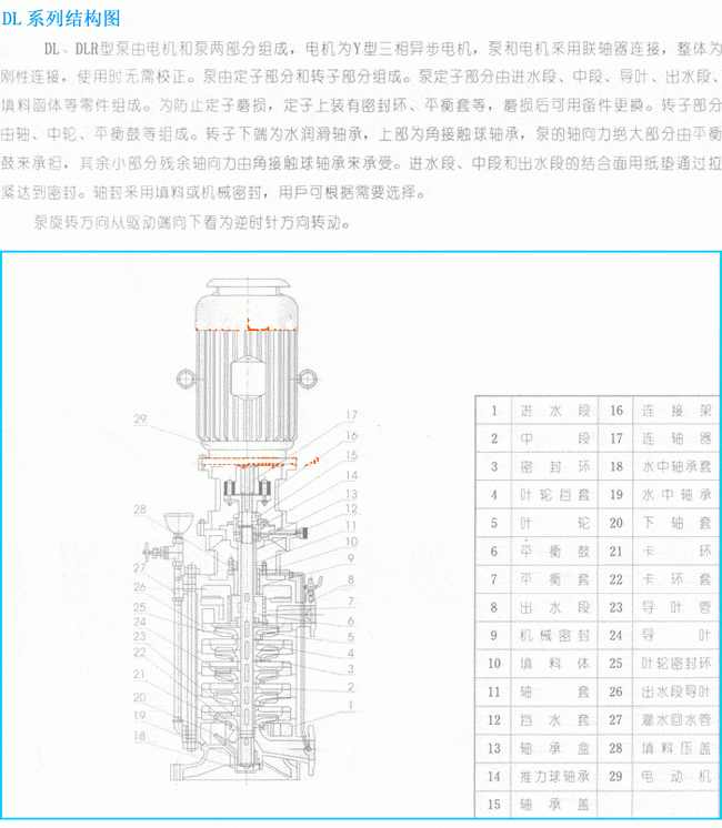 DL型立式多級離心泵結構圖