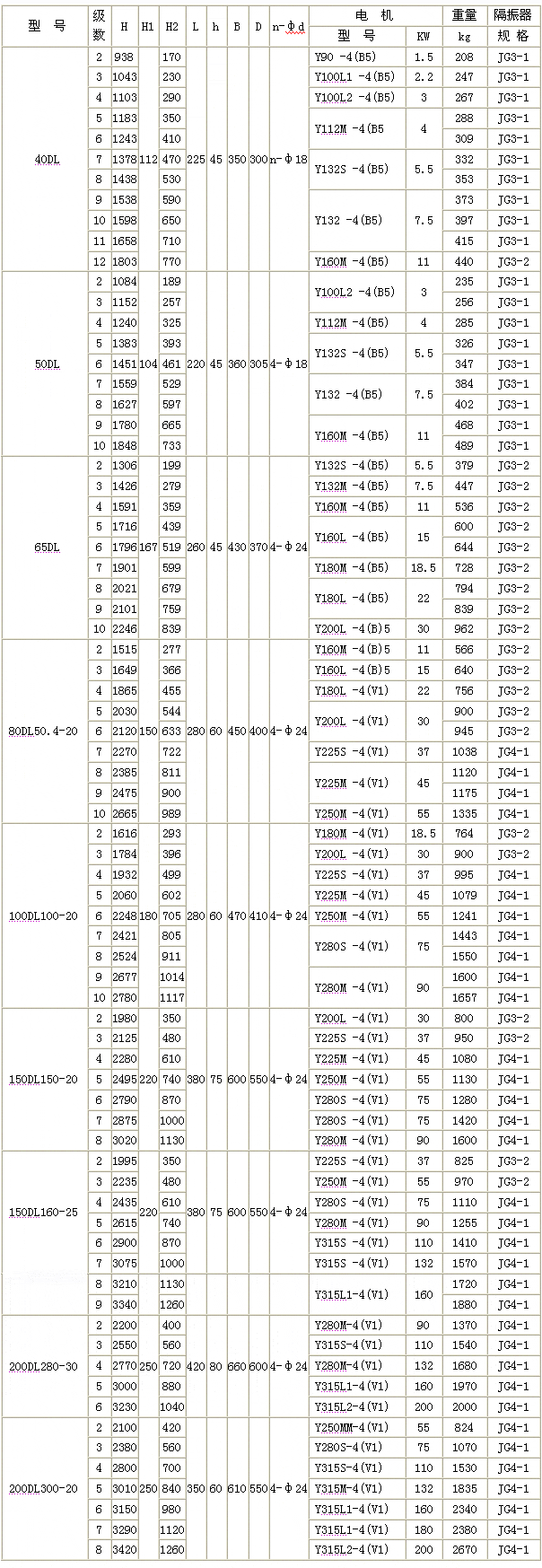 DL型立式多級(jí)離心泵外形安裝尺寸DL型立式多級(jí)離心泵外形安裝尺寸圖 ![]() DL型立式多級(jí)離心泵外形安裝尺寸表