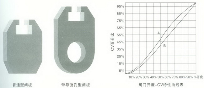 帶導流孔的平板閘閥,其流量特性等同于同規格的管道,呈等百分比特性,不帶導流孔的平板閘閥,其中腔胯度較楔式閘閥小,且屬于規則的圓柱體,所以基本上除了壓力損失較帶導流孔的大小,其余特性基本接近。不帶導流孔調節型的平板閘閥其對流量的調節特性優于普通不帶導流孔的平板閘閥。