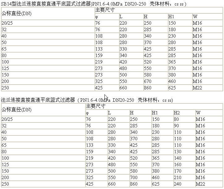 >> SB14型、SB34型法蘭連接直接直通平底籃式過(guò)濾器