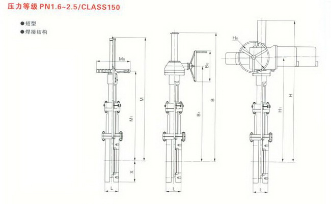 主要外形尺寸和重量 PN1.6、2.5 CLASS150